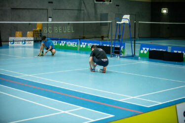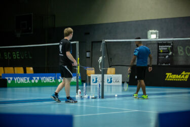 Doch auch die Bonn-Beueler hatten eine stärkere Mannschaft als noch im Hinspiel auffahren können, eine Wiederholung des damaligen Wahner 6:2-Erfolges war also alles andere als garantiert. Und Beuel hatte jetzt den Heimvorteil im Rücken. Wobei: An diese Halle hat man sich schnell gewöhnt, es ist nämlich keine Schulsporthalle sondern eine reine Badminton-Halle, mit für diese Sportart optimierten Bedingungen, vom Boden, mit keinen anderen eingezeichneten Linien als denen der Badminton-Felder, bis zur Decke, mit einer speziell ausgerichteten Beleuchtung, sodass beim Blick nach oben nach dem Federball dieser nie im Blendlicht verschwindet. Sehr angenehm, hier spielt man gerne! Das sind halt Bundesliga-Bedingungen, von denen auch Kreisliga-Mannschaften profitieren.