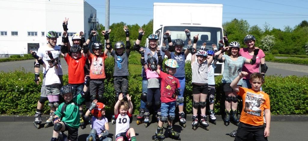 21 begeisterte Teilnehmer beim Inliner Lehrgang auf dem Porta-Gelände lernten es. Ziel der Schulung des TV Jahn Köln-Wahn war den Teilnehmern Grundkenntnisse des Inliner fahren zu vermitteln und das Üben von gängigen Situationen im Straßenverkehr.