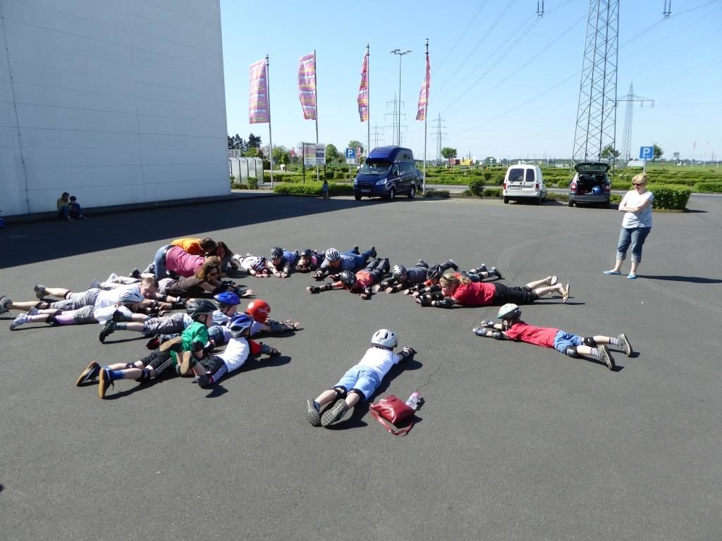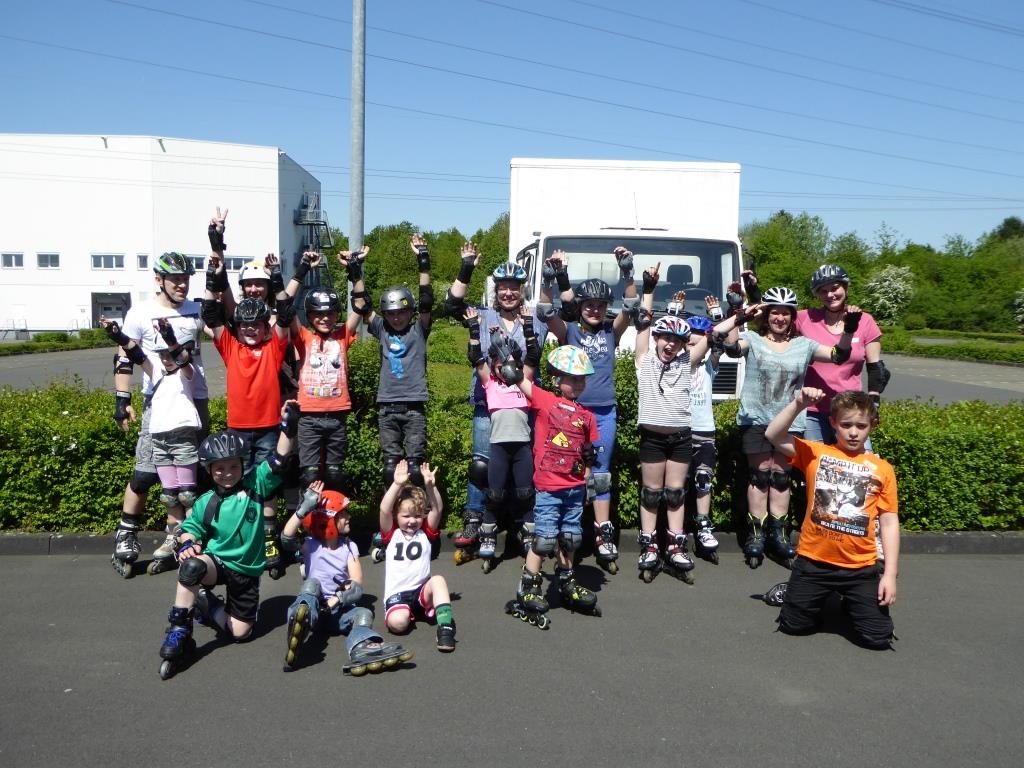 21 begeisterte Teilnehmer beim Inliner Lehrgang auf dem Porta-Gelände lernten es. Ziel der Schulung des TV Jahn Köln-Wahn war den Teilnehmern Grundkenntnisse des Inliner fahren zu vermitteln und das Üben von gängigen Situationen im Straßenverkehr.